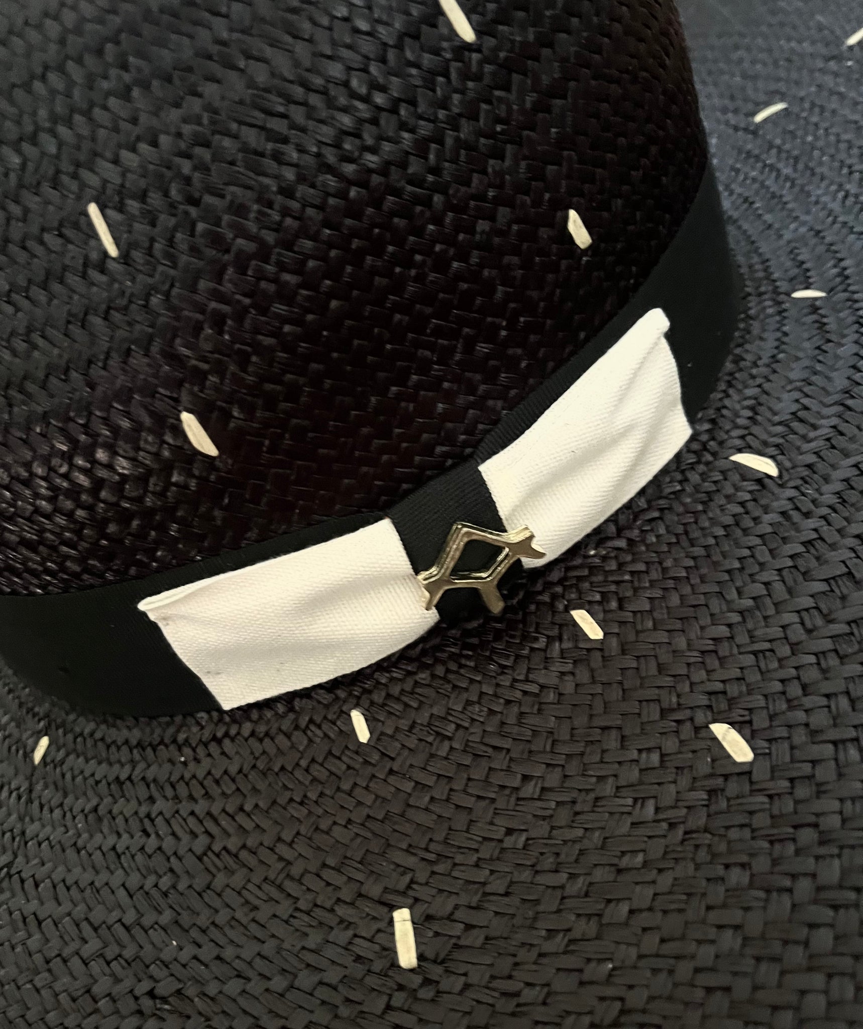 100% paja toquilla de Ecuador. Nuestra colección Riviera es un sombrero de paja toquilla color negro con cinta negra y detalles en coló blanco. Unitalla con velcro ajustable por dentro que puedes ampliar o reducir a tu gusto.