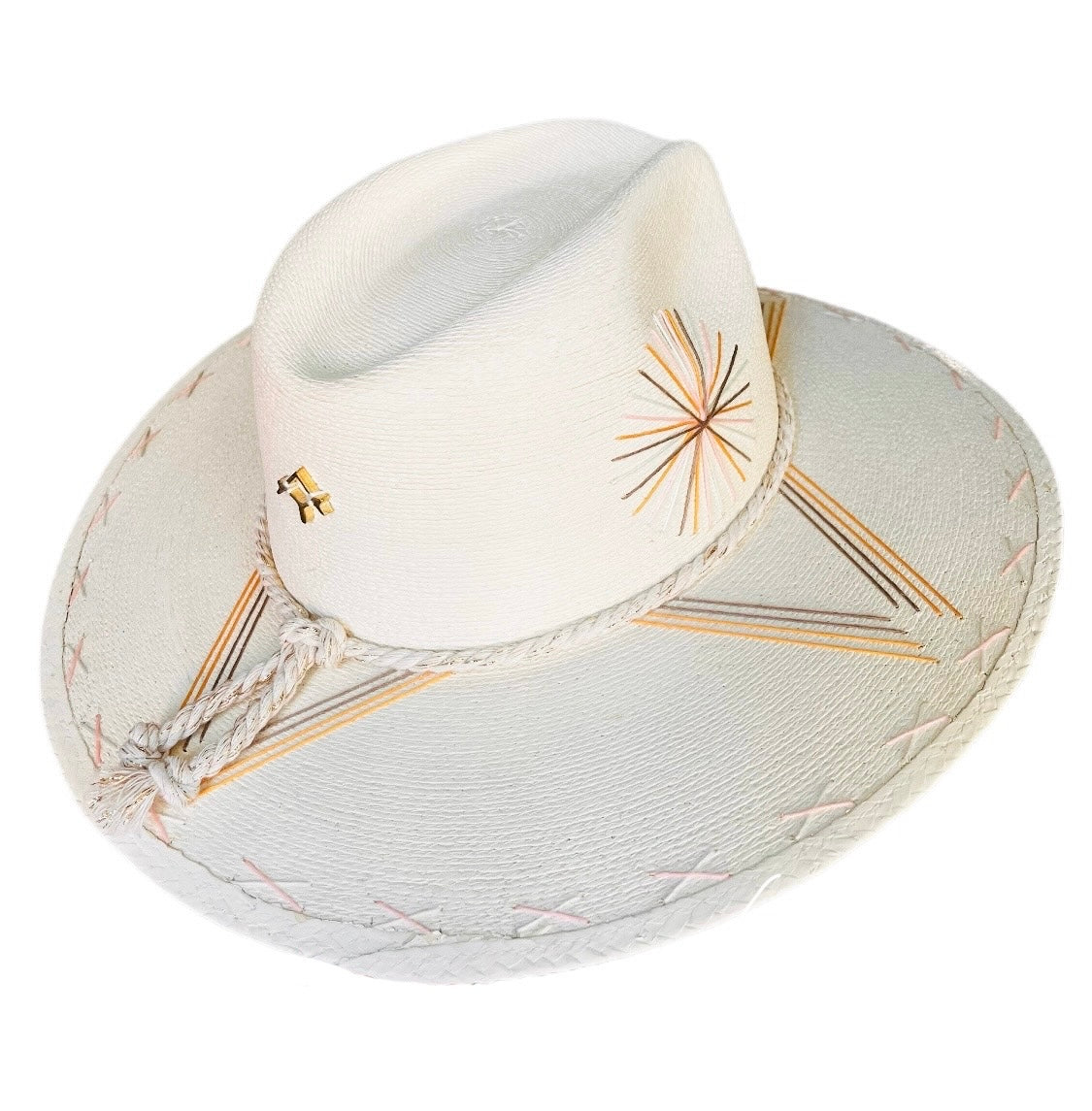 Sombrero de Palma fina y resistente bordada a mano con diseños únicos super coloridos y motivos mexicanos inspirados en la Paz Baja California, México. Talla Standard/Unitalla. El sombrero viene una placa de metal con la insignia de la marca. El diseño del patrón en los hilos multicolor es igual al de la imagen y en los hilos puede variar algún tono.
